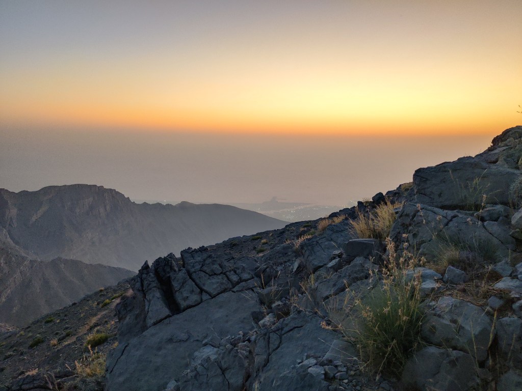 Jebel Jais, part of the Hajar Mountains, was formed 70 million years ago due to the collision of the Arabian and Eurasian plates. The mountains display a stunning variety of colors, ranging from rose to orange to blue and bluish-grey, which give the landscape an incredible glow. While Jebel Jais can be quite crowded with people driving up for picnics, the hiking trails are usually quiet, especially outside the actual winter season. Most people avoid hiking in late spring or early autumn, but I think it’s just a question of attitude! Appropriate clothing, water and sunscreen go a long way and choosing either early mornings or afternoons will make your hike more enjoyable even on the hotter days.